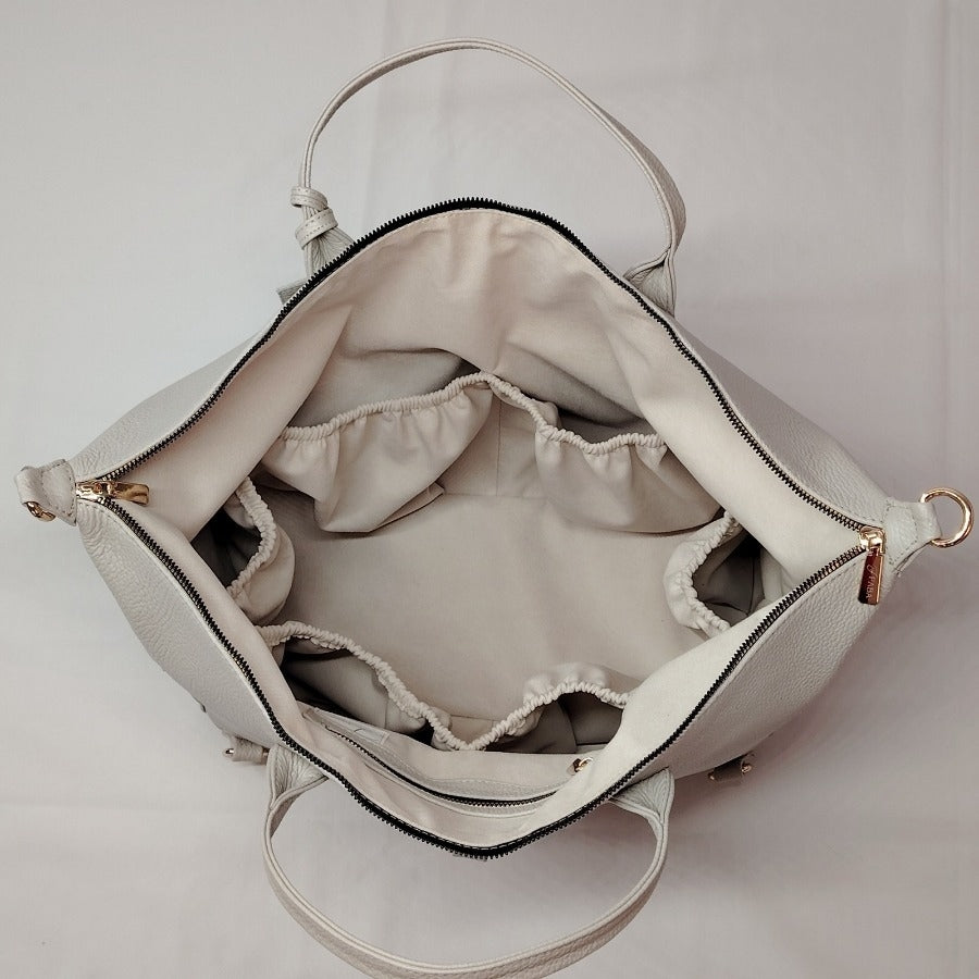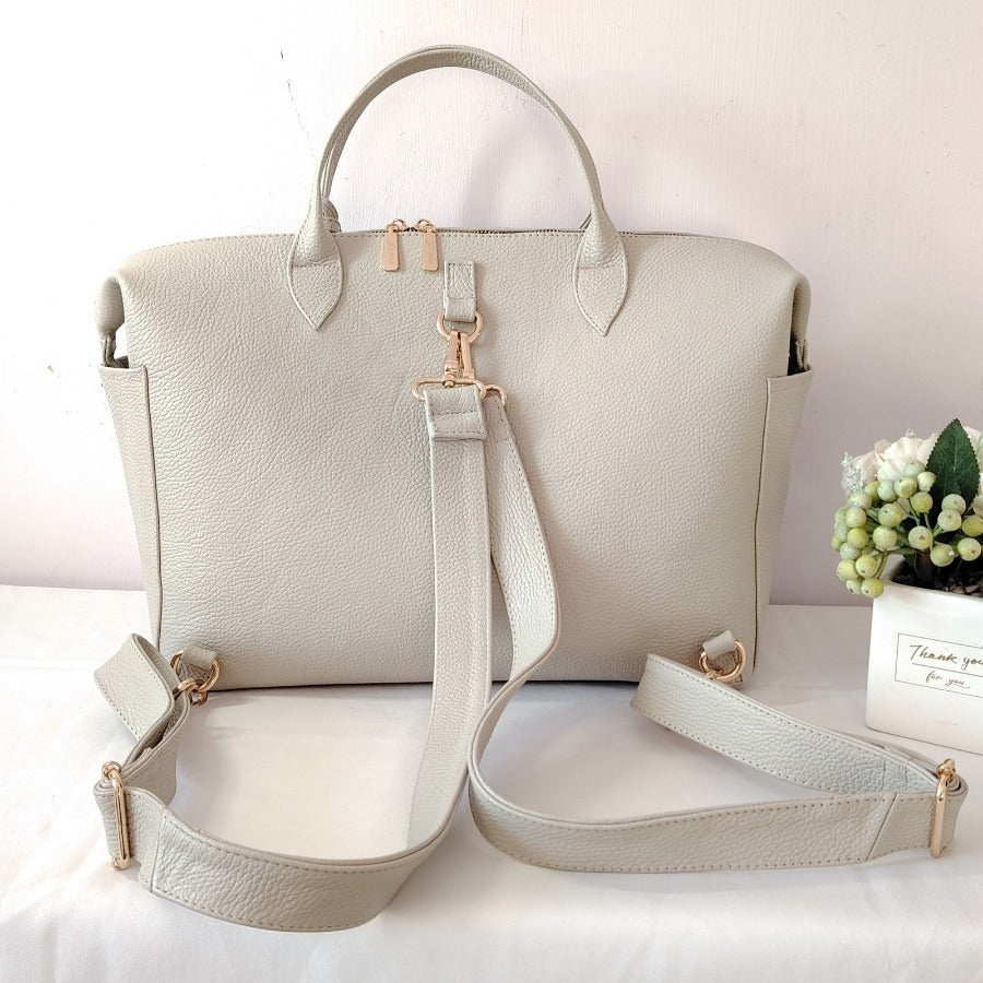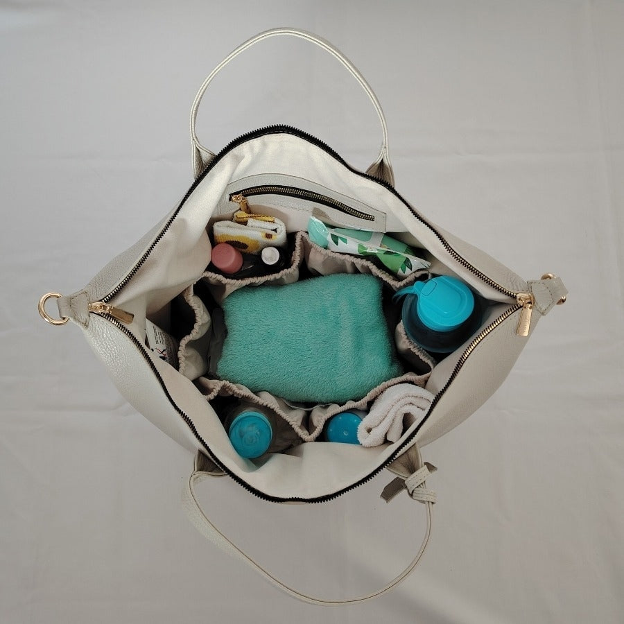 Moderna y acondicionada con gran espacio en su interior, cuenta con compartimentos que te permiten llevar de manera organizada lo necesario para tu bebe la puedes usar como back pack o bolso al hombro, sus tirantes te permiten asegurarla a la carriola.